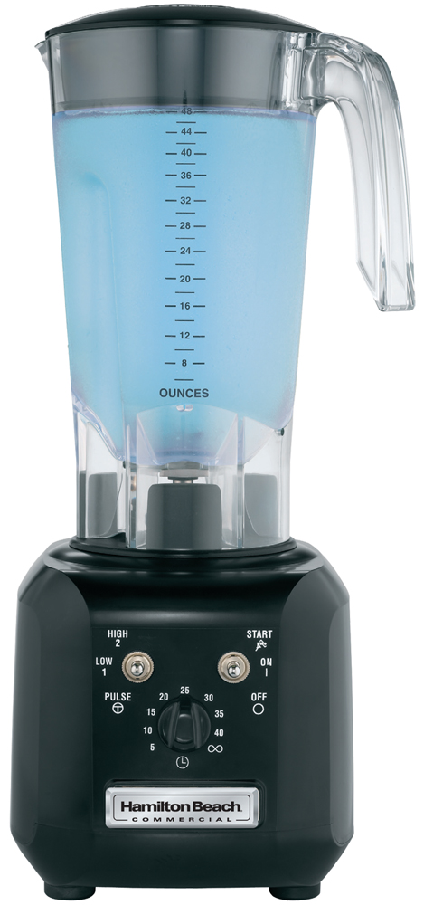 High Performance Blender. Motor: 1 HP. Application: Smoothies and Frozen drink. Average Time: 15 Sec. Ice Type: Half or Full Cube Ice. Polycarbonate Jar, capacity 48 oz with removable filler-cap and measurement marks. 2 Speeds w/ Timer and Pulse for precision blending. Durability: Metal Clutch and Jar Pad Sensor. Durable stainless steel blades. Electrical: 600W, 230V/50Hz/1Ph.